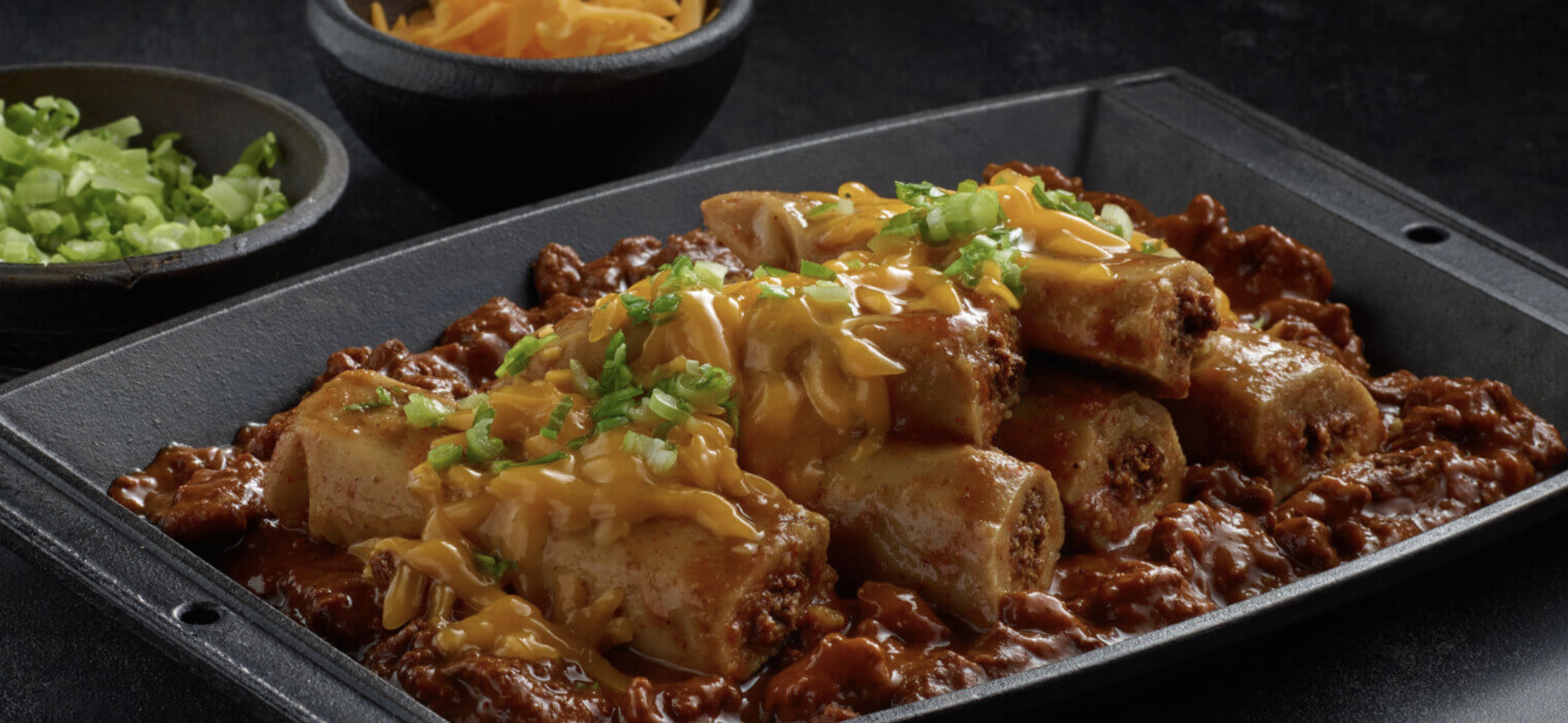 Crispy fries topped with hot XLNT chili and melted cheese create an instant comfort food favorite.