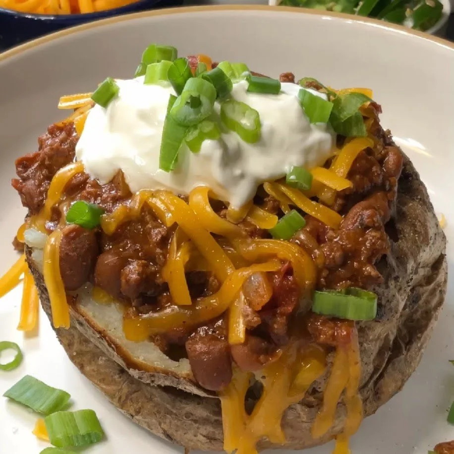 ✨ Top our chili con carne with shredded cheese, green onions, and serve with cornbread for the ultimate comfort dinner.
